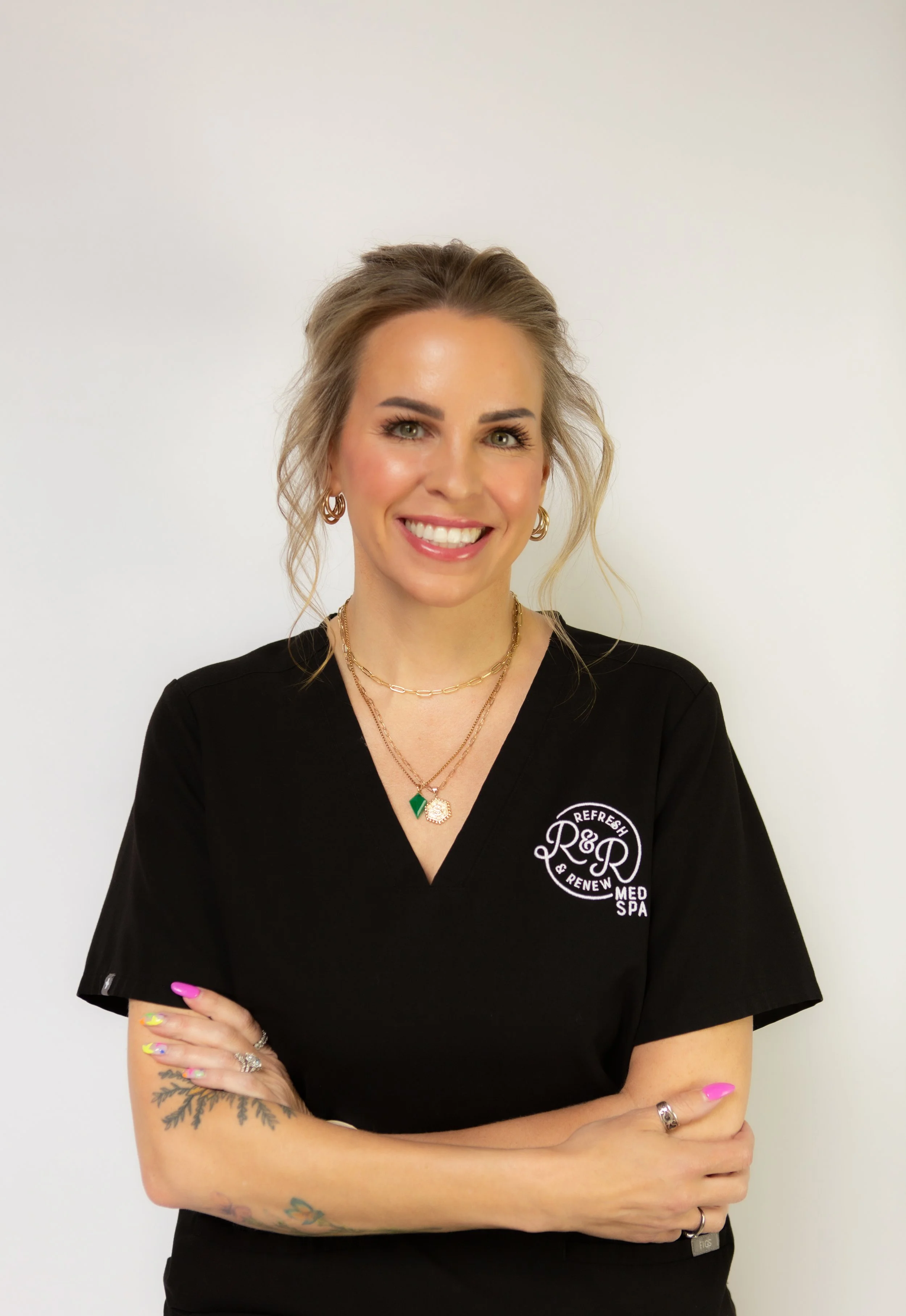 Sarah is the owner and founder of Refresh & Renew MedSpa. Before transitioning to aesthetics full-time in 2020, Sarah practiced as a CRNA for over 12 years at a level one trauma center and brings her wealth of experience, precision and professionalism to her aesthetics practice. Sarah’s favorite treatments include filler and radiofrequency microneedling, and she loves empowering clients to feel more comfortable and confident in their skin. Sarah and her husband are the parents to two great kids, and she loves spending time with her family and riding her horse, Vinnie.